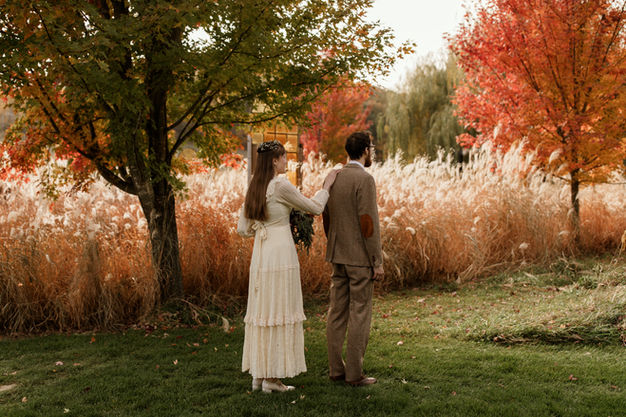 Lena and Kal's wedding was a vintage dream! The couple chose to focus in on thoughtful details and creating a beautiful time with their guests, while passing on wedding norms like a traditional wedding party. The couple enjoyed the perfect fall day with peek colors and sunny skies at Hidden Meadows. They had a carefree attitude which allowed them to be fully present throughout their day with their family and friends. The couple thrifted most of their décor, chose to have a wood fired pizza truck for dinner, and opted for a live band for their dance. The amount of joy in this day is overwhelming, and it will always have a special place in my heart!