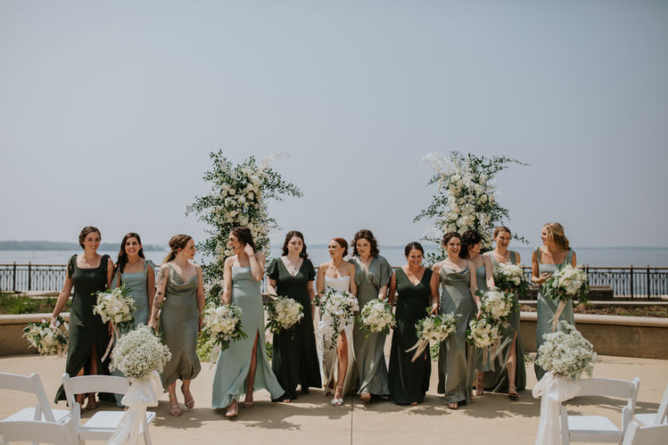 Sierra and Joey were married in the heart of Madison, WI at the Edgewater Hotel. The day had stunning details ranging from gorgeous florals, to chic modern black and white elements. Sierra is originally from upstate New York, so she wanted to feel like she was in the woods. Floral Expressions created this stunning effect through dripping overhead greenery throughout the reception space. Olive Branch Events absolutely nailed the design of this beautiful event and getting to document it was such a privilege. Sierra and Joey had a shorter ceremony before retiring to their reception where they shared personalized drinks and heartfelt speeches that had everyone tearing up. They ended the night dancing away to their live band. This was one of the most magical wedding days, and I could not be happier to have been a part of it!